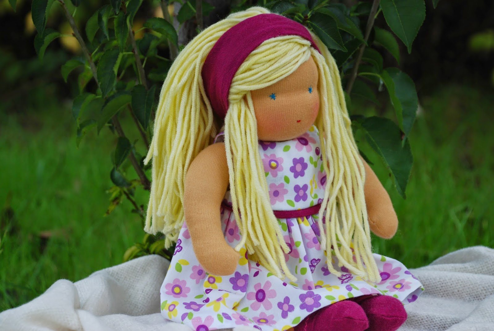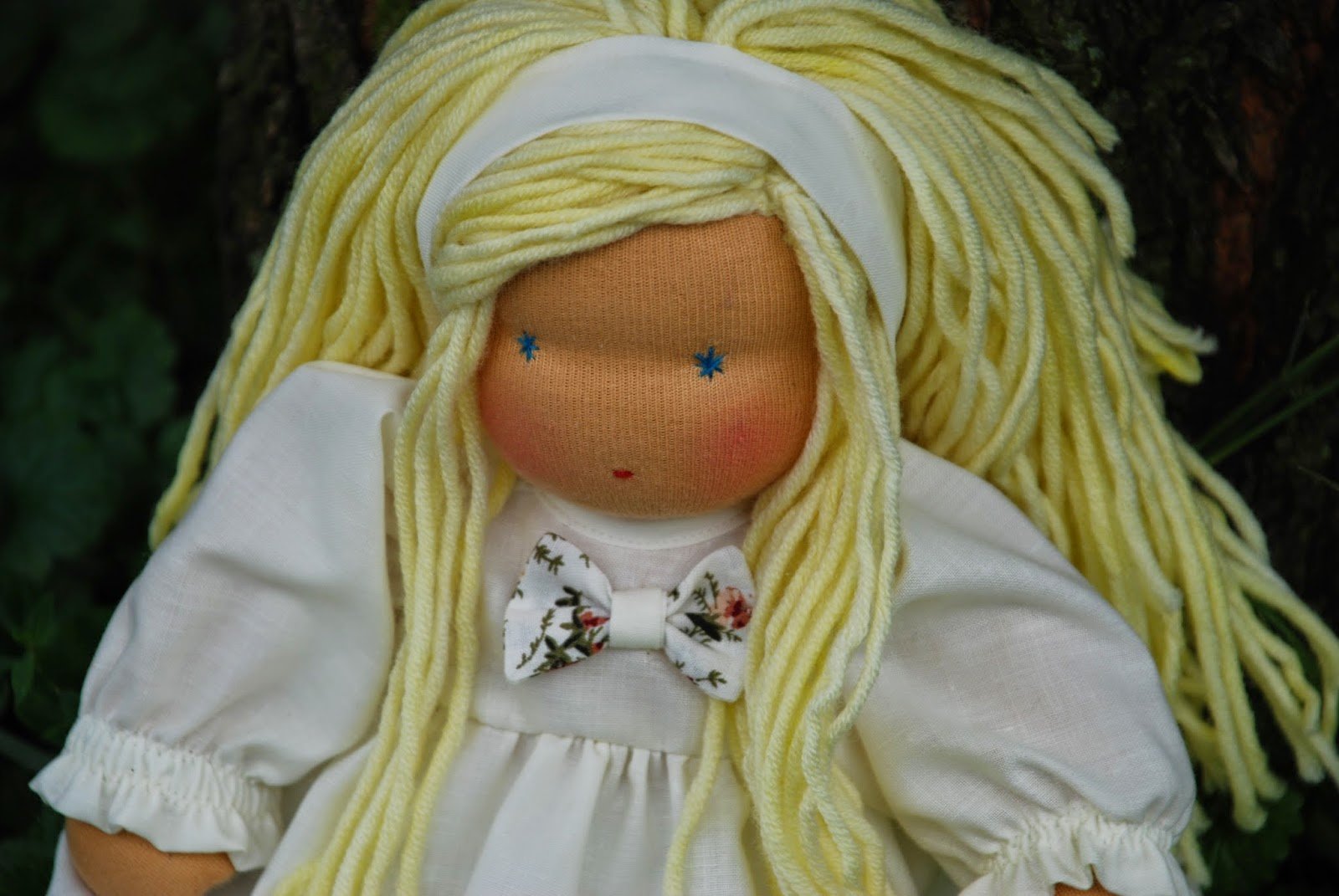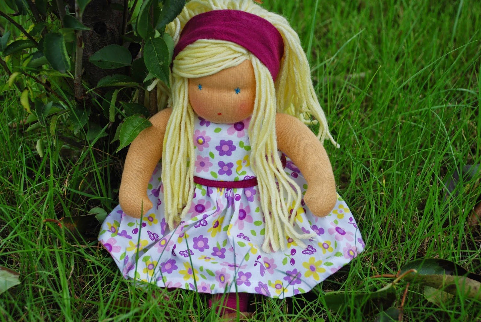 Noéminek készült ez a 30 cm-es szőke babalány. Noémi nagyon szereti a szép ruhákat, babáját ünneplőben kérte, váltóruhával 🙂