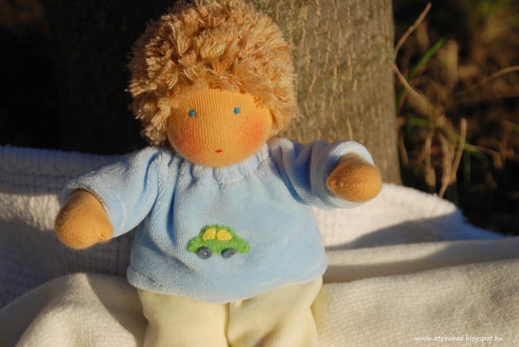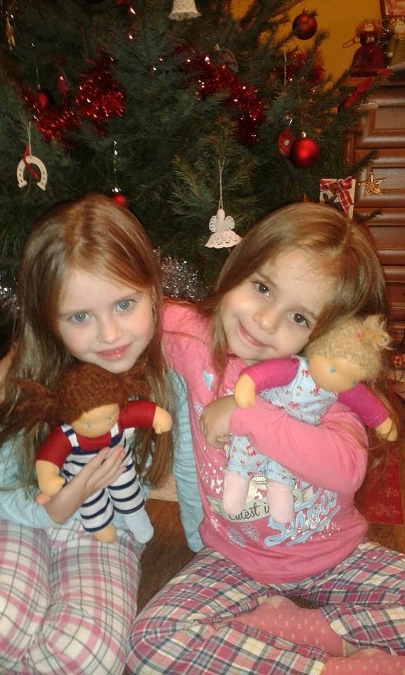 Flórának készült ez a kis gyömöszölős baba. Flóra még csak 15 hónapos, elmélyülten figyeli nővérkéit, Johannát és Julit játszás közben. Johannának és Julinak készült Bori és Bogi. 🙂