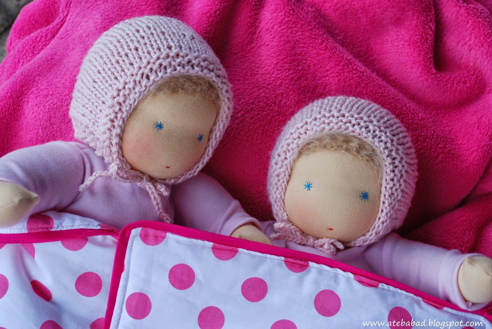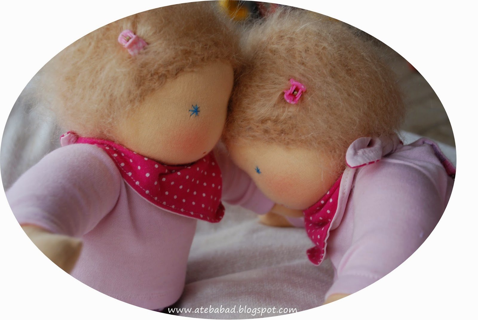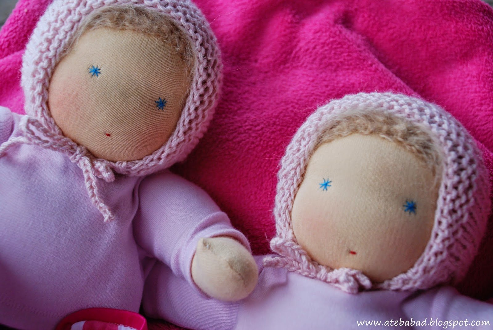 Johannának és Julinak, a 3 és 4 éves testvérkéknek készültek ezek a babák. Nem szoktam egyforma babákat varrni, a testvéri béke érdekében most mégis szükséges volt. 🙂 Így született meg Bori és Bogi, a csecsemő ikerpár, Zorka pedig az ő kishúguknak, Flórának.
